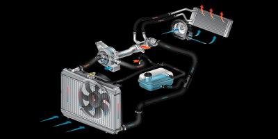 The level of coolant should be between the ‘low’ and ‘high’ markings outside the reservoir.